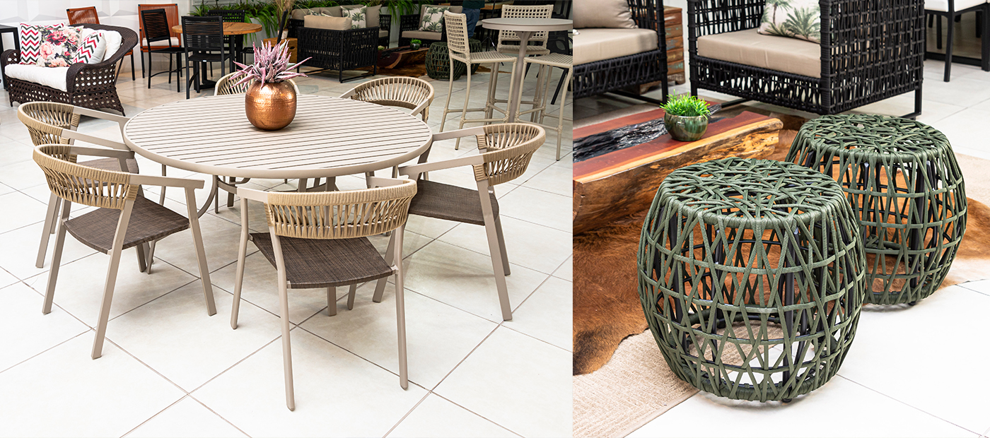 O tricô náutico é utilizado na fabricação de móveis versáteis e resistentes. O material permite que os acabamentos e detalhes sejam mais finos, tornando as criações sofisticadas, delicadas e com personalidade. Ele é produzido em 17 cores diferentes e conta com proteção UV.